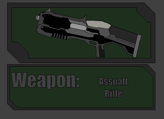 A standard issue Assault Rifle. Fires rounds in a 30 bullet clip. Secondary function is a shrapnel blast that takes up a whole magazine. (I would love some criticism/comments that would help me make this one better. It looks like crap right now, but I know with a few changes it would be great. Problem is, I just can't seem to find what to change myself. Help is appreciated.)